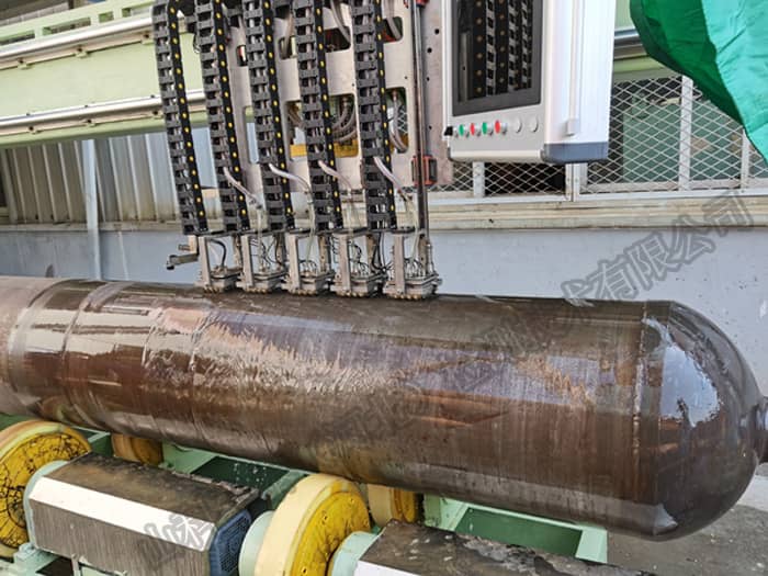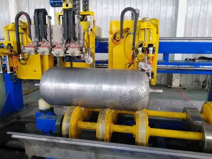 長管拖車用大容積鋼制無縫氣瓶由于長度和體積都較大,如果采用接觸法手工探傷,不僅探傷效率低下,還會因為